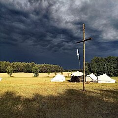 Auf einer Wiese am Waldrand erleben Kinder und Jugendliche eine Woche,